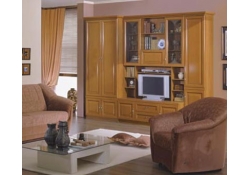 входят шкафы, тумба для телевизора, витрины и бар. Модель выполнена из